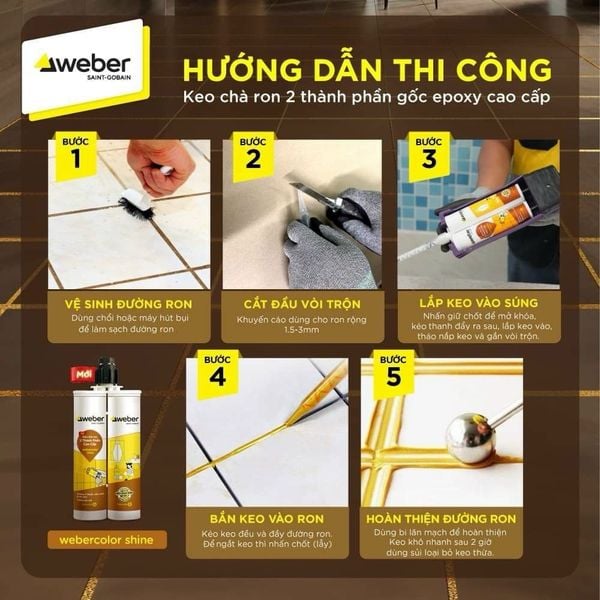 Định mức sử dụng: Từ 5m2 - 10m2/Chai 360ml tùy kích thước đường ron và kích thước loại gạch